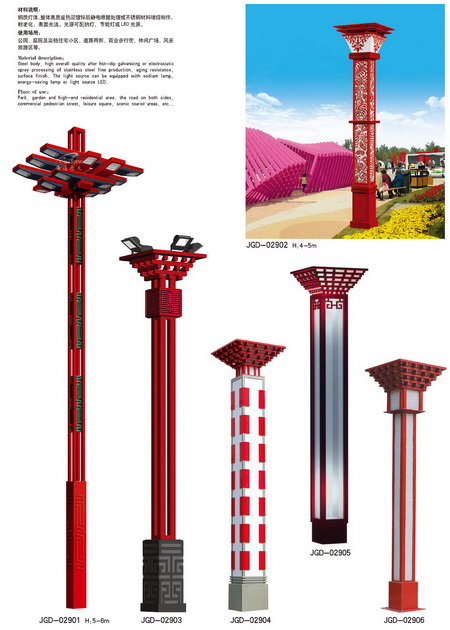 景觀燈分類:城市標志性景觀燈、仿古景觀燈、鏤空現代景觀燈、不銹鋼景觀燈、藝術造型景觀燈等