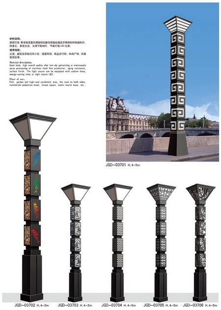 景觀燈分類:城市標志性景觀燈、仿古景觀燈、鏤空現代景觀燈、不銹鋼景觀燈、藝術造型景觀燈等
