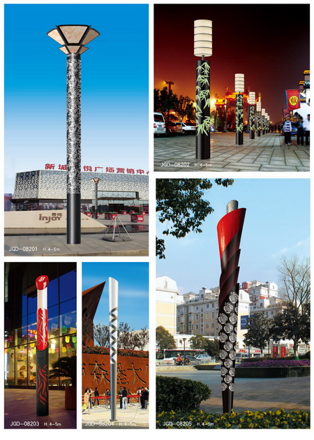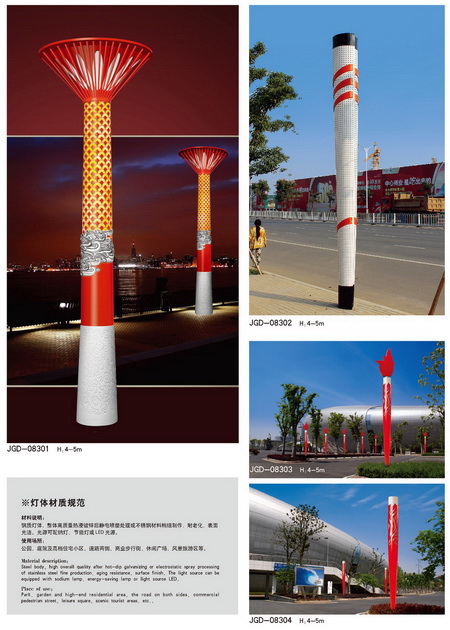 景觀燈分類:城市標志性景觀燈、仿古景觀燈、鏤空現代景觀燈、不銹鋼景觀燈、藝術造型景觀燈等