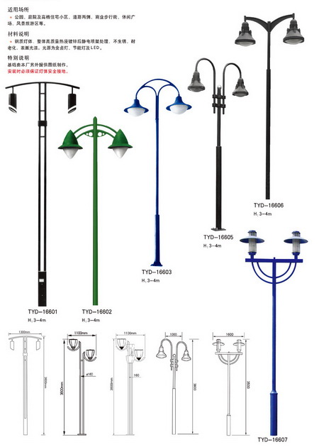 庭院燈是戶外照明燈具的一種,通常是指6米以下的戶外道路照明燈具,其主要部件由:光源、燈具、燈桿、法蘭盤、基礎預埋件5部分組成,因為庭院燈其具有多樣性、美觀性具有美化和裝飾環(huán)境的特點,所以也被稱之為景觀庭院燈。主要應用于城市慢車道、窄車道、居民小區(qū)、旅游景區(qū),公園、廣場等公共場所的室外照明,能夠延長人們的戶外活動的時間,提高財產(chǎn)的安全。