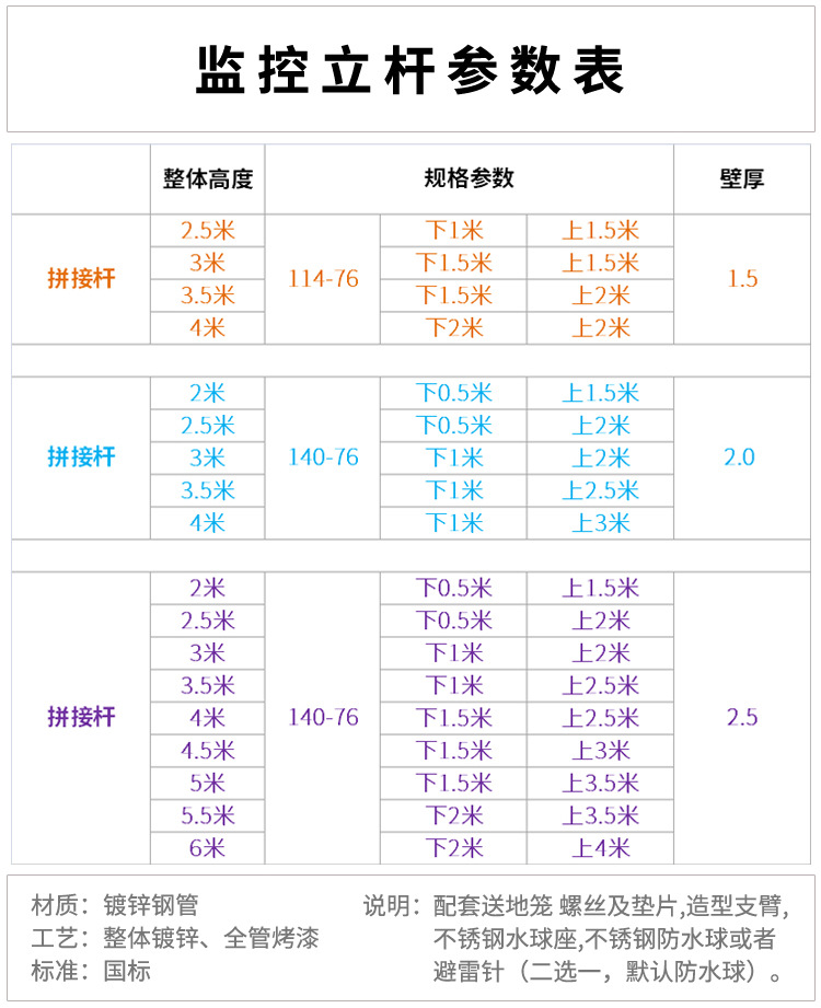 景觀燈是現(xiàn)代景觀中不可缺少的部分。它不僅自身具有較高的觀賞性,還強調藝術燈的景觀與景區(qū)歷史文化、周圍環(huán)境的協(xié)調統(tǒng)一。 制作工藝: 監(jiān)控桿-特點用途: 監(jiān)控桿-產品包裝介紹: 我公司始終堅持:客戶對我們的信賴是公司得以生存的基礎,高品質的服務是我們對客戶的回報,優(yōu)質的產品,優(yōu)惠的價格和售后的技術指導是我們永遠的承諾。 精益求精是我們對產品質量的不斷追求,合理的價格、優(yōu)質的服務是與您誠摯合作的前提,誠信的萬通人愿與您攜手共謀發(fā)展,共創(chuàng)新世紀的輝煌。 |